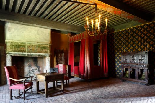 Château de Villeneuve-Lembron, chambre de la Bergère, lit à la française