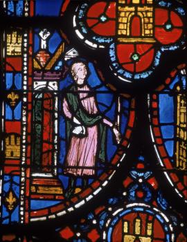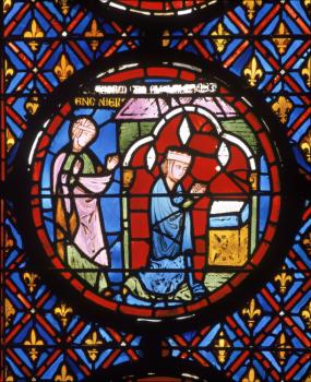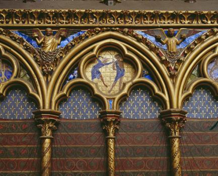 Sainte-Chapelle de Paris, chapelle haute, première travée de la nef, décor du soubassement