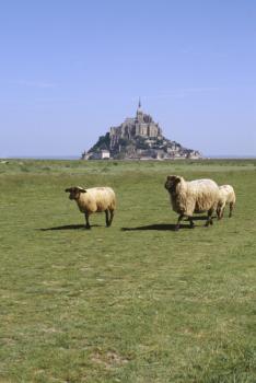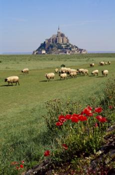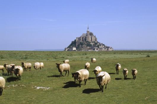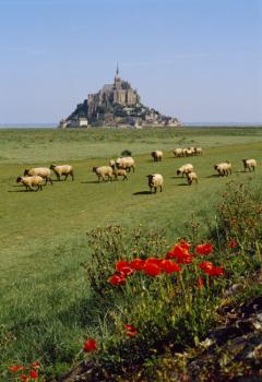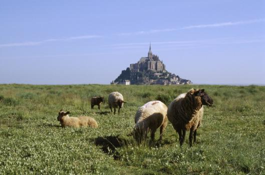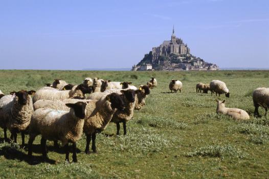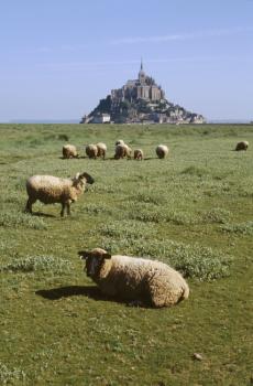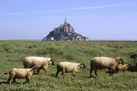 Baie du Mont-Saint-Michel et prés salés vus depuis l'église abbatiale