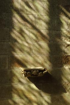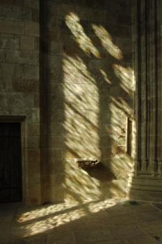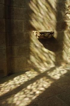 Abbaye du Mont-Saint-Michel, église abbatiale, jeux de lumière sur le bénitier