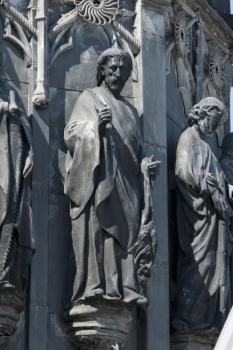 Sainte-Chapelle de Paris, statue de saint Barthélémy à la base de la flèche, côté nord