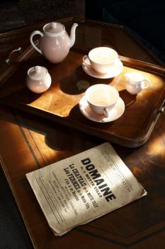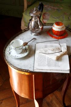 Château de Carrouges, salon d'été, table desserte