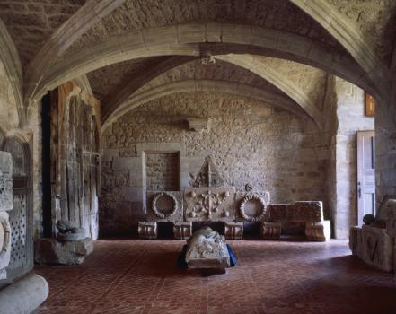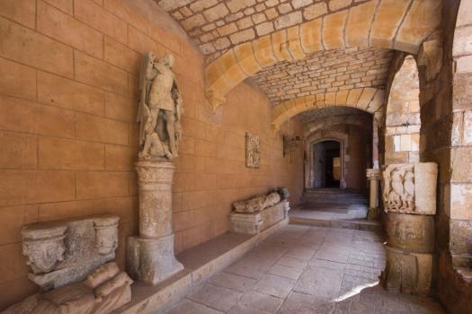 Château de Castelnau-Bretenoux, galerie lapidaire au rez-de-chaussée du logis est