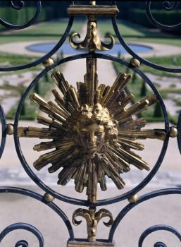 Château de Champs-sur-Marne, soleil Louis XIV, motif central du garde-corps du balcon du salon de musique