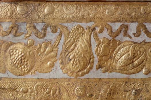 Apparition du Christ à Marie, détail du décor derrière la Vierge