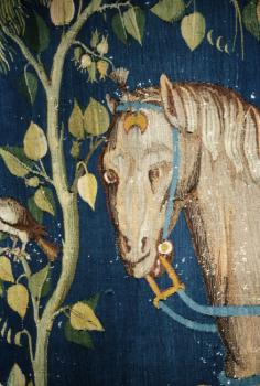 Troisième sceau : le cheval noir et la famine, détail de la tête du cheval