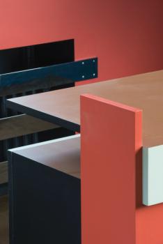 Villa Cavrois, rez-de-chaussée, chambre de jeune homme, détail des couleurs