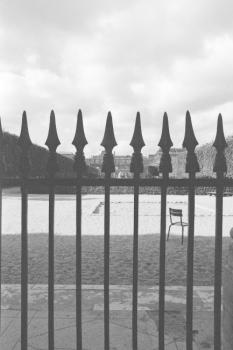 Jardin du Palais-Royal, lances d'une grille, bac à sable