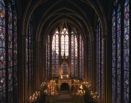 Sainte-Chapelle de Paris, chapelle haute, tribune des reliques et verrières de l'abside