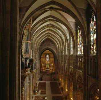 Cathédrale Notre-Dame de Strasbourg, nef vers l'est depuis la tribune