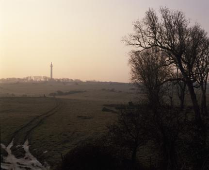 Vue sur la plaine de Wimille avec la colonne de la Grande Armée en arrière-plan