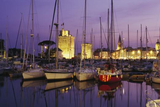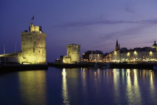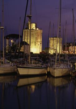 Château d'Angers, porte de la Ville et son pont-levis au crépuscule