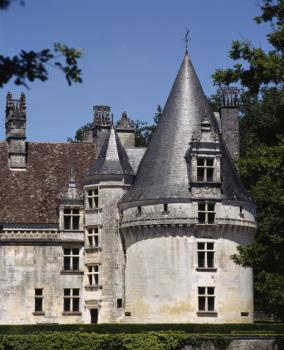 Château de Puyguilhem, tourelle hexagonale de l'escalier reliant le corps de logis principal et la grosse tour
